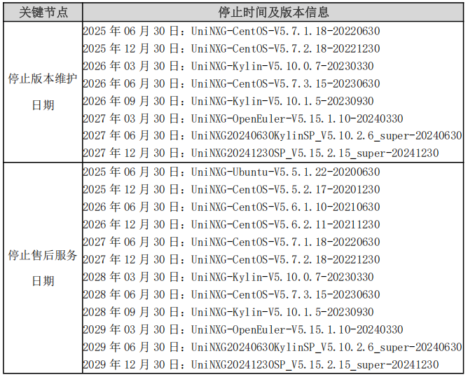 聯(lián)軟科技每年在 6、12 月份發(fā)布長期支持的軟件版本,現(xiàn)對公司產(chǎn)品生命周期管理各時間節(jié)點明確,如下表格所示: