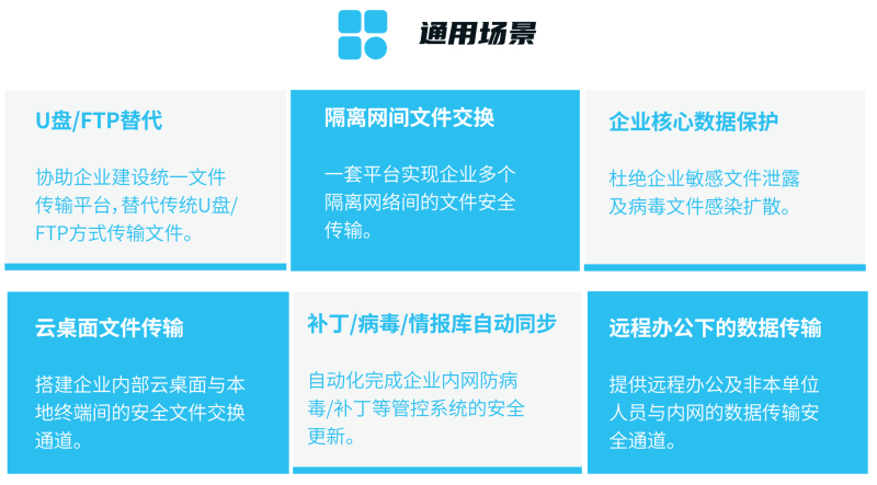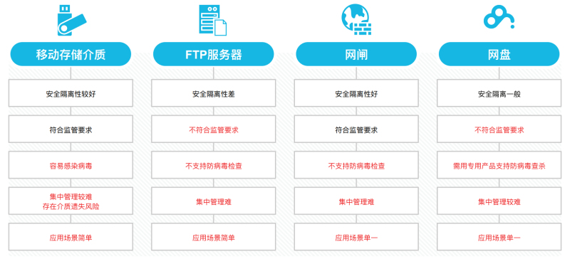 對比網(wǎng)絡(luò)共享、FTP、U盤等傳統(tǒng)方案,聯(lián)軟安渡UniNXG安全數(shù)據(jù)交換系統(tǒng),提供高效文件跨網(wǎng)上傳下載分享,并可實現(xiàn)數(shù)據(jù)防泄漏、病毒木馬查殺、文檔交換行為審計,文件交換審批等能力。