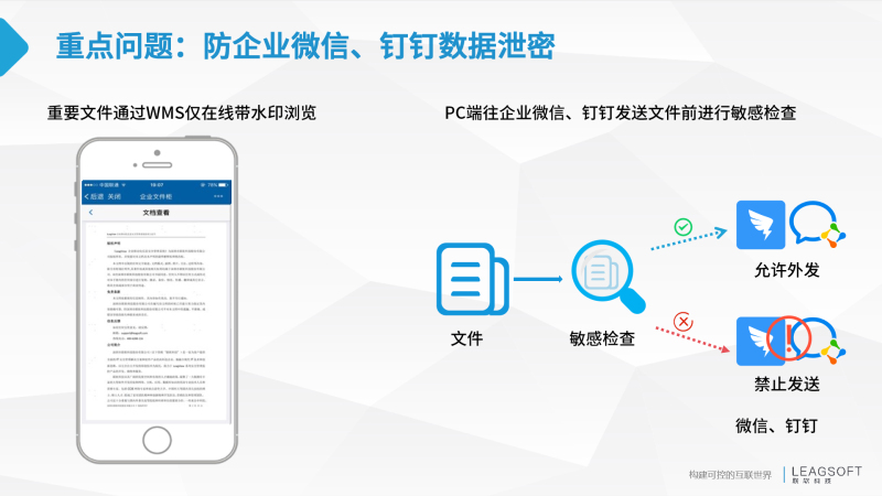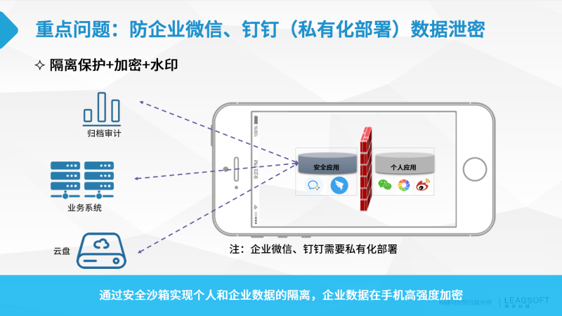 ● 防企業(yè)微信、釘釘(私有化部署)數(shù)據(jù)泄密:隔離保護+加密+水印