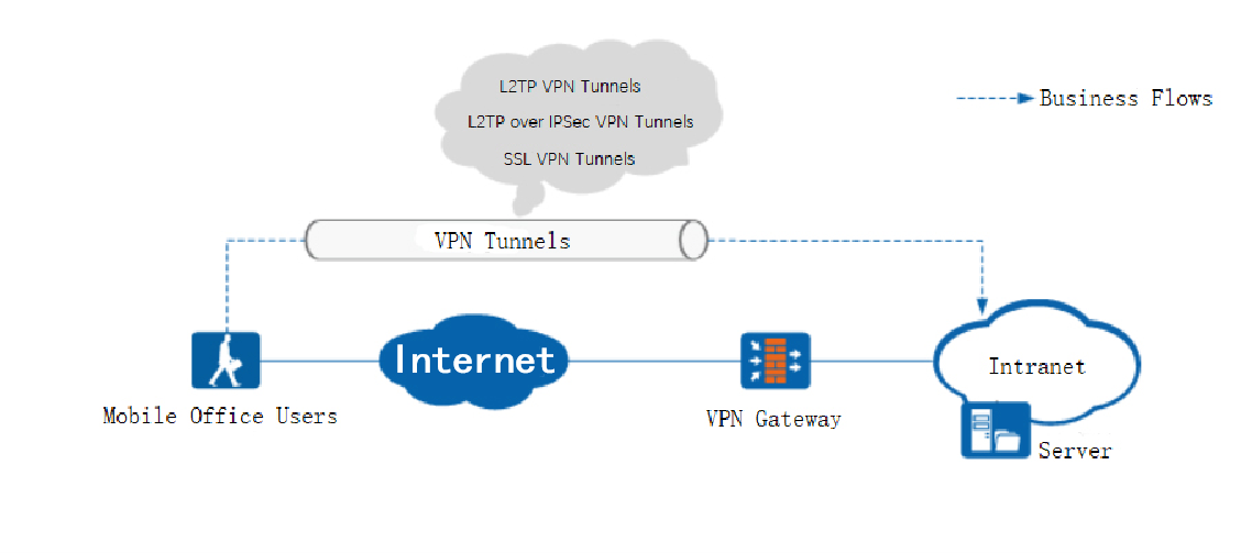 Uni VPN Client is a terminal software for VPN remote access launched . It mainly provides secure and convenient access services for mobile office users to remotely access corporate intranet resources. A typical application scenario is shown in Picture 1.