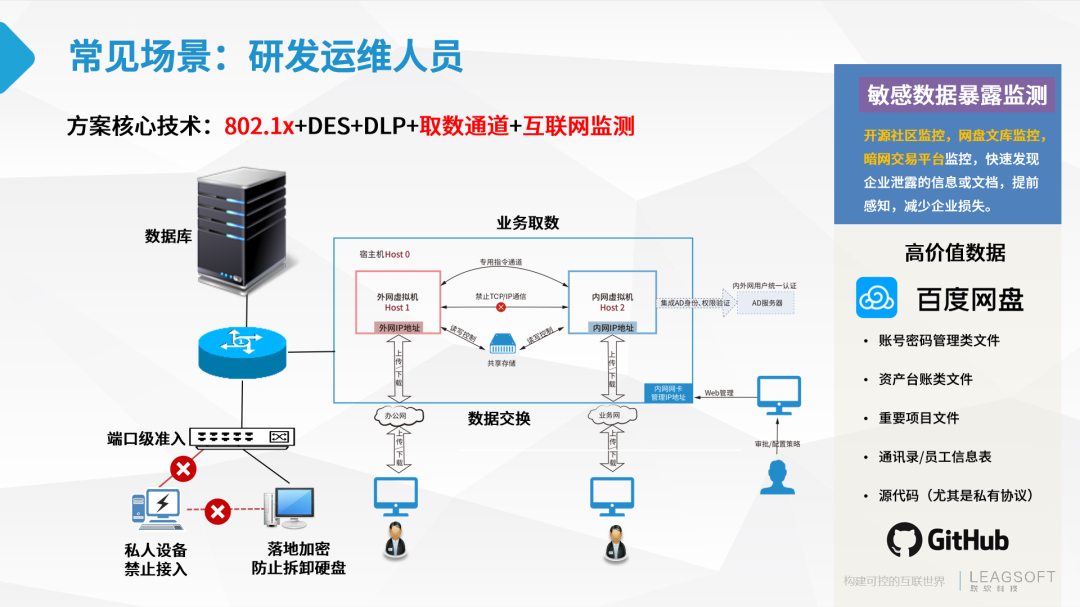 ● 安全與業(yè)務(wù)融合,在堵和控制前,建立更加方便、安全的數(shù)據(jù)交換方式供員工使用;