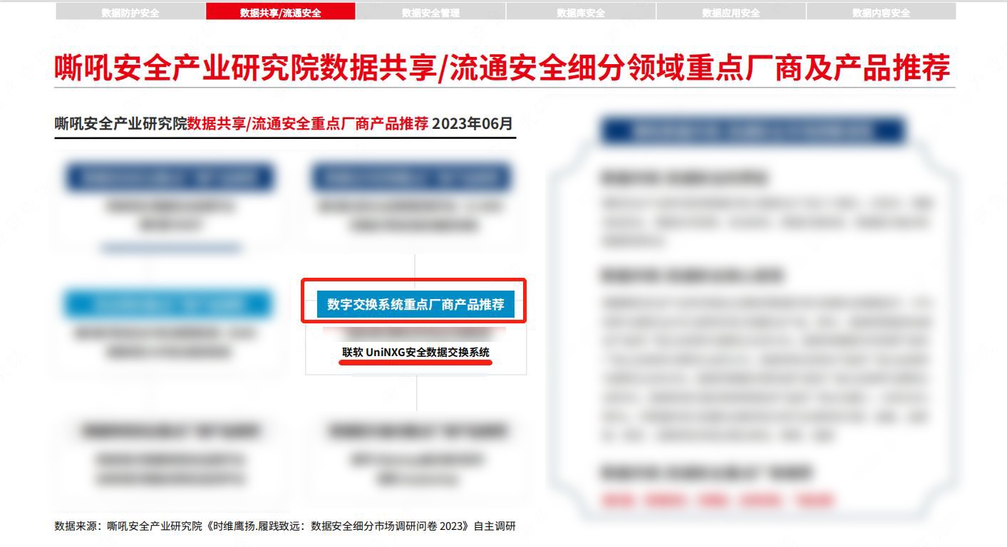在數(shù)據(jù)防護(hù)安全細(xì)分領(lǐng)域,聯(lián)軟科技入選數(shù)據(jù)防護(hù)安全綜合能力推薦廠商,聯(lián)軟UniWMS數(shù)據(jù)水印系統(tǒng)入選數(shù)字水印重點(diǎn)廠商產(chǎn)品推薦目錄。在敏感數(shù)據(jù)共享/流通安全細(xì)分領(lǐng)域,聯(lián)軟UniNXG安全數(shù)據(jù)交換系統(tǒng)入選數(shù)字交換系統(tǒng)重點(diǎn)廠商產(chǎn)品推薦目錄。