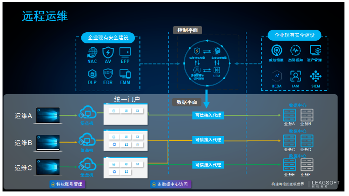 聯(lián)軟科技推出基于零信任理念的遠(yuǎn)程運維解決方案,以UniSDP軟件定義邊界系統(tǒng)為核心,在正式接入運維前,通過SPA預(yù)認(rèn)證技術(shù),對運維人員身份以及遠(yuǎn)程運維終端進行身份合法性校驗,并且對運維終端進行安全接入檢查,確保環(huán)境及身份安全可信后授權(quán)接入。在遠(yuǎn)程運維過程中,對運維終端及操作行為進行持續(xù)信任評估,一旦發(fā)現(xiàn)威脅和異常,立即進行動態(tài)訪問控制,同時提供終端數(shù)據(jù)安全防護能力,防止運維過程中造成敏感數(shù)據(jù)泄露。在整個運維周期間,對接入、訪問、操作、退出等行為進行全面的審計記錄,遠(yuǎn)程運維結(jié)束后為管理員提供豐富的審計數(shù)據(jù),可及時發(fā)現(xiàn)問題并溯源。在用戶體驗方面,提供統(tǒng)一運維門戶,將遠(yuǎn)程運維系統(tǒng)及工具統(tǒng)一發(fā)布,統(tǒng)一運維入口。支持多種掃碼認(rèn)證方式,結(jié)合SSO單點登錄功能,實現(xiàn)掃一掃即可輕松完成認(rèn)證,最大程度提升運維效率,為企業(yè)提供安全、便捷、高效的遠(yuǎn)程運維環(huán)境。