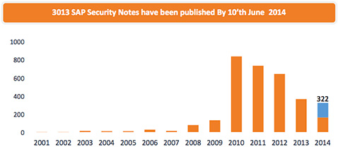 1. SAP系統(tǒng)漏洞的數(shù)量超過人們想象, SAP已經(jīng)處理的漏洞超過3000個, 大約占所有在Internet上公布漏洞的5%。