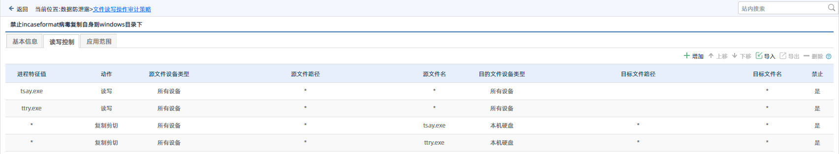 2、incaseformat病毒是通過(guò)復(fù)制自身到windows目錄下(C:\windows\tsay.exe和C:\windows\ttry.exe),通過(guò)EPP的文件訪問(wèn)控制功能,禁止在windows目錄下的病毒文件進(jìn)行創(chuàng)建、修改、復(fù)制等操作。