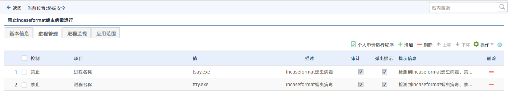 1、incaseformat病毒是利用U盤(pán)傳播的病毒,已部署聯(lián)軟EPP終端安全管理平臺(tái)的用戶(hù),可通過(guò)設(shè)定U盤(pán)安全防護(hù)策略,有效防范該病毒的傳播。