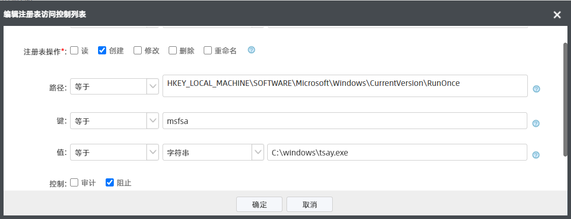● 監(jiān)測(cè)并禁止創(chuàng)建注冊(cè)表值