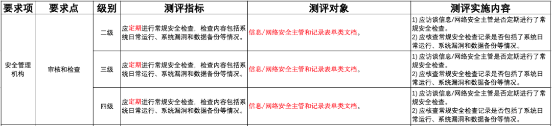 ▲圖2-2 安全管理機(jī)構(gòu)-審核和檢查-測評(píng)要求