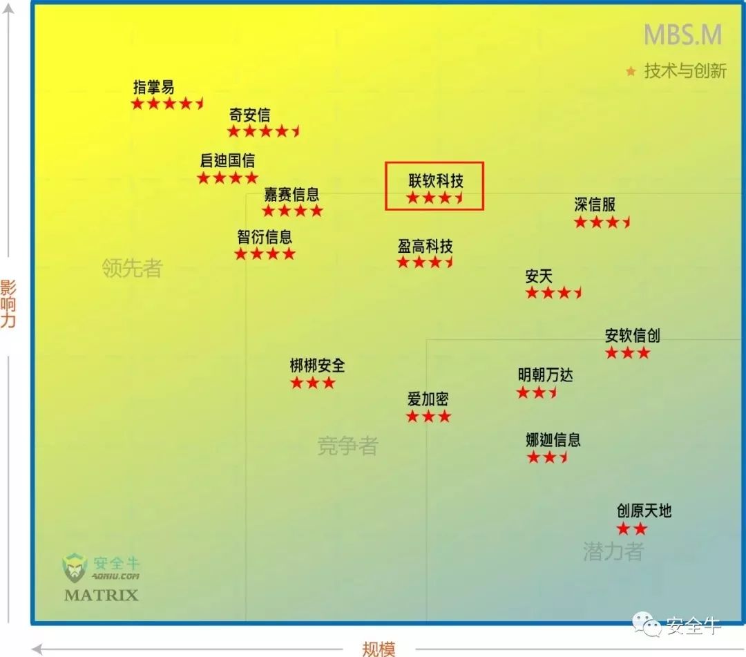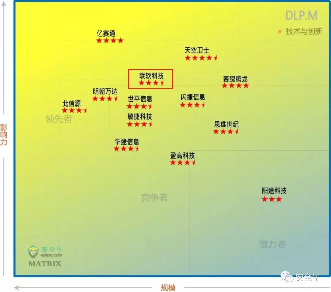 近日,安全牛推出《中國網(wǎng)絡(luò)安全細(xì)分領(lǐng)域矩陣圖》(Matrix 2019.05)。此次報告推出的矩陣圖包含5個細(xì)分領(lǐng)域,聯(lián)軟科技入選數(shù)據(jù)防泄密/DLP和移動業(yè)務(wù)安全兩大細(xì)分領(lǐng)域,并處于領(lǐng)先者地位。