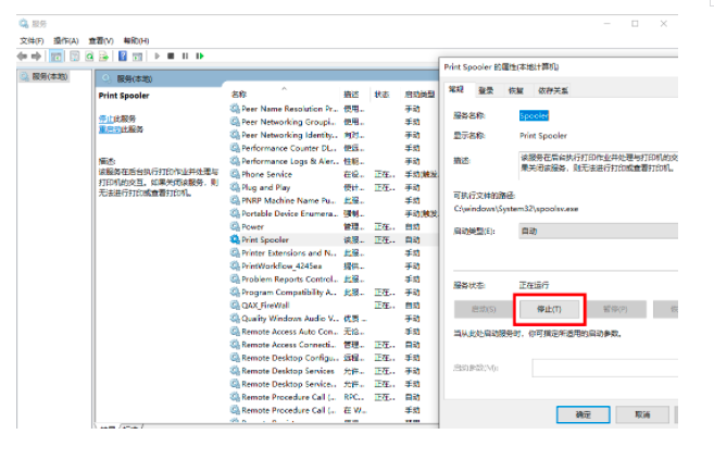 然后暫停打印機(jī)服務(wù),如下圖所示: