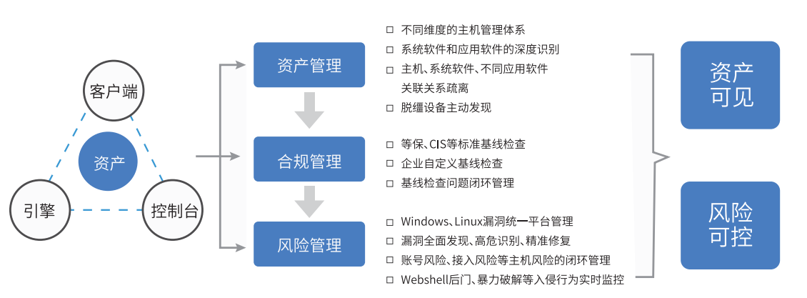 ●減少主機(jī)的被攻擊面,發(fā)現(xiàn)未知風(fēng)險(xiǎn),讓主機(jī)安全真正落地,進(jìn)而保證業(yè)務(wù)系統(tǒng)的持續(xù)正常進(jìn)行;