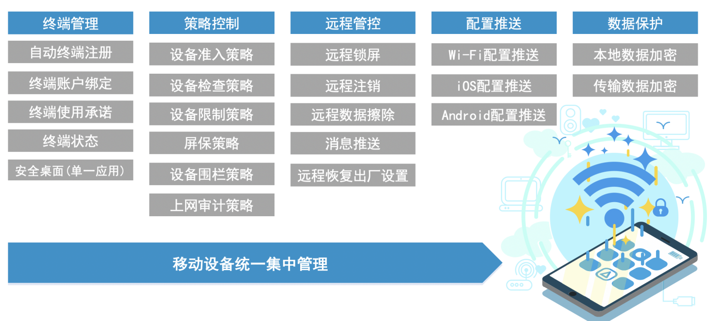 針對企業(yè)移動配發(fā)設(shè)備提供完整的解決方案,避免“專機私用”,保障企業(yè)業(yè)務(wù)正常運行