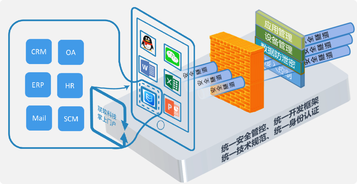 提供企業(yè)私有應(yīng)用商店,對(duì)企業(yè)使用的APP應(yīng)用、H5輕應(yīng)用等統(tǒng)一下發(fā)、安裝、管理。